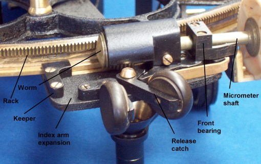 Much of the rest of restoring this sextant consisted simply in cleaning and repaint parts, so for much of the rest of this post I will illustrate, usually without commentary, parts that differ in Husun sextants from other makes. A lot of the ground is traversed in my book, together with details of other manufacturers’ approaches.