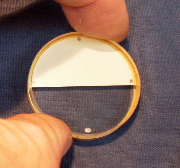 The arc is a sliver of screen-printed aluminium secured to the frame with glue and two pins which, rather surprisingly are made of steel. Predictably, in my example which had seen a lot of sea use, they had rusted and the glue had also given way. The telescope is a 2.4 x 22mm Galilean that focusses by rotating the objective lens mounting rather than the eyepiece and is less prone to go out of focus as the eye presses against the scope. The eyepiece is provided with a deep flexible rubber pad, a perhaps necessary adjunct for a lightweight telescope used on board a pitching and rolling yacht.