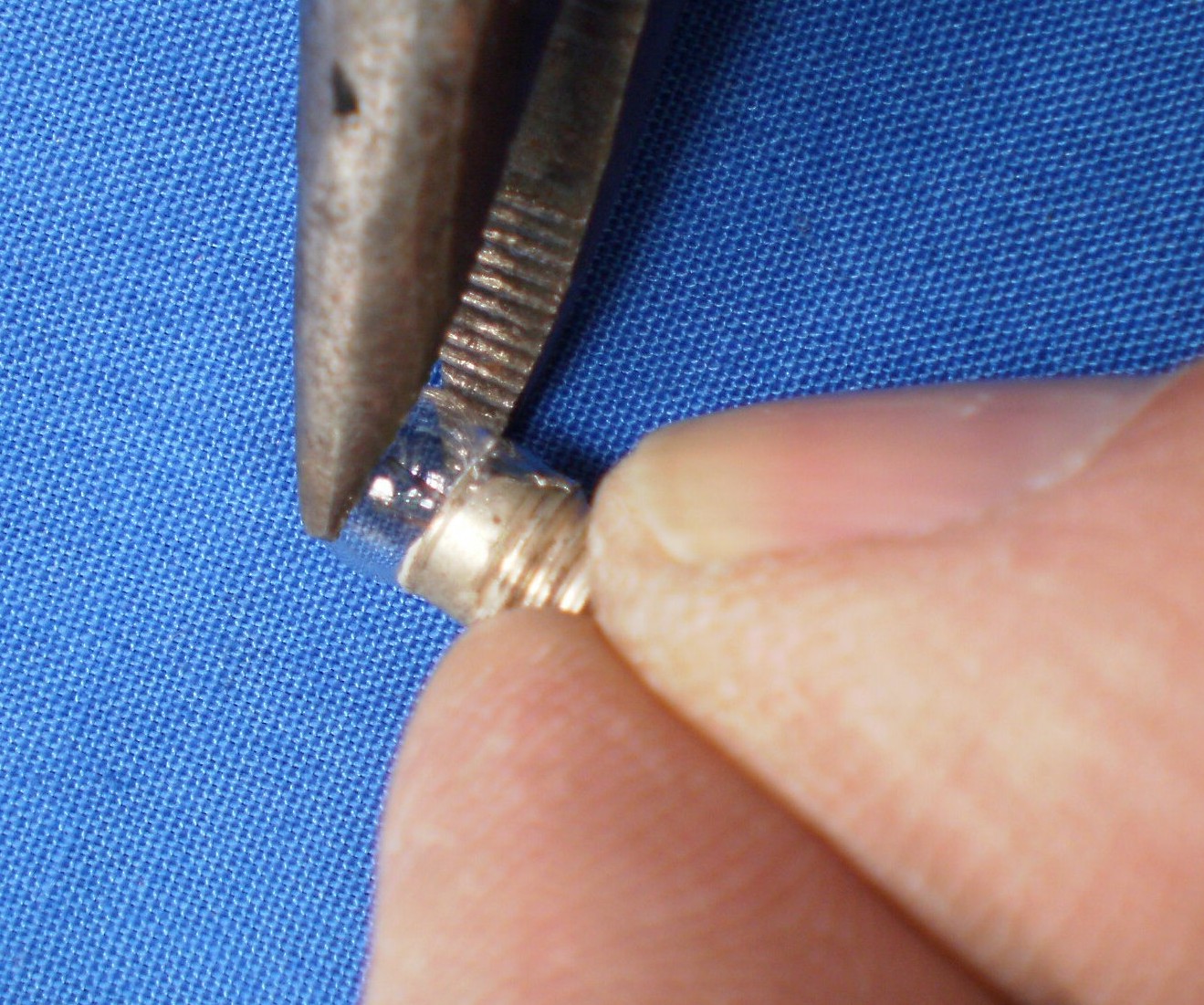 The first step is to salvage the base (Figure 1). Since the bulb was burned out, I grasped it with pliers, intending to crush the glass, but in the event  the globe came free intact, except for one of the wires.
