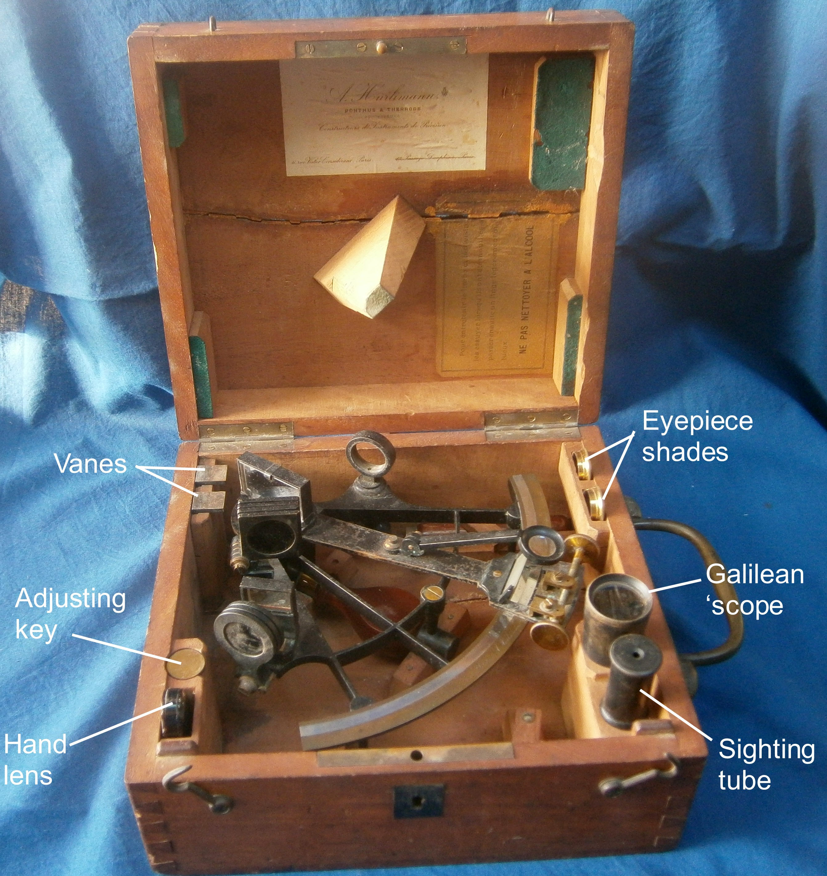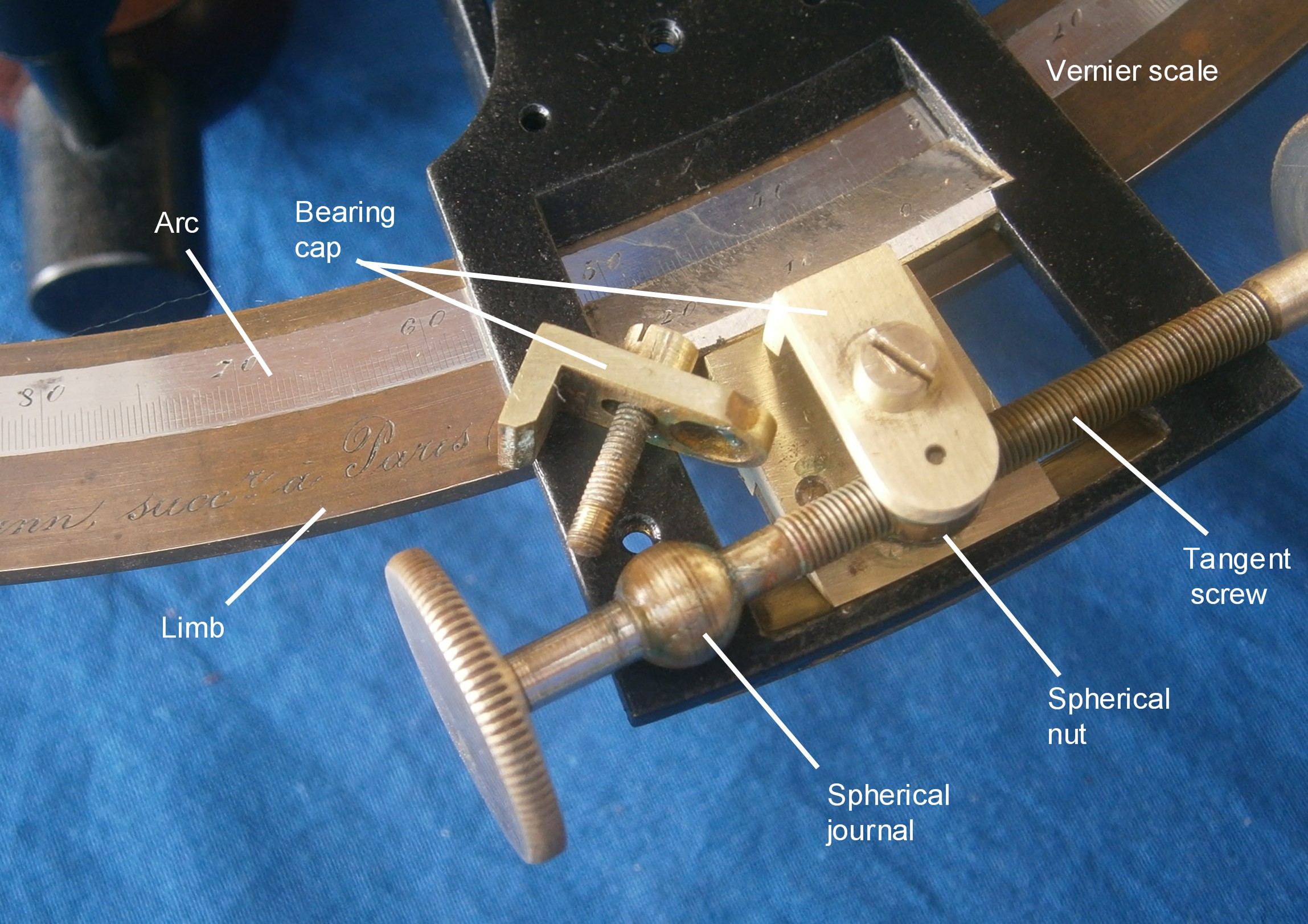 A rather dusty and neglected little French sextant came into my hands a few weeks ago. The kinship of French sextants is quite difficult to sort out. This one bore a label in which the name of A Hurlimann is given prominence and the names of his successors, Ponthus and Therode, are given less prominence (Figure 1). The limb is engraved in copperplate Lorieux, A Hurlimann, succr (successor) à Paris.