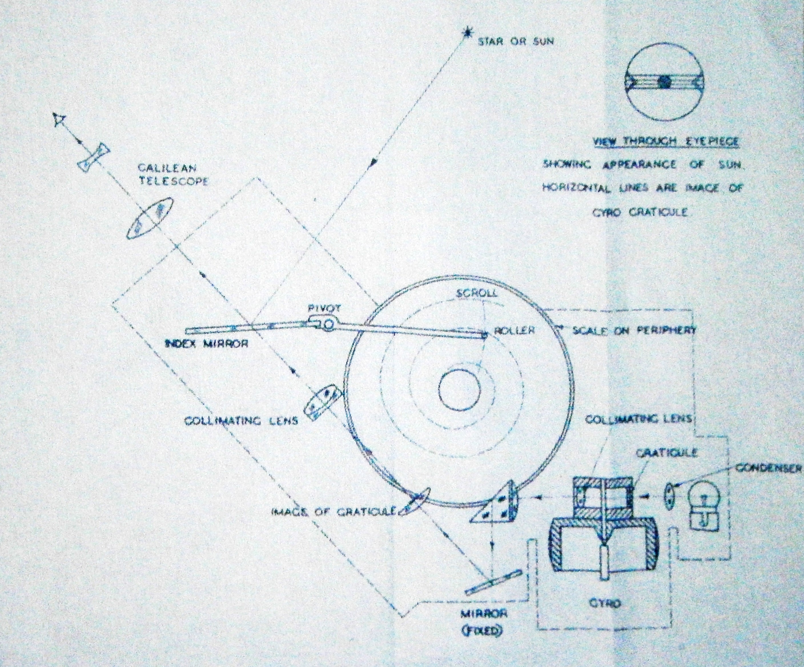 When a bubble sextant is subject to an acceleration, all the fluid in the spirit level is affected. As you will see when I describe the gyro unit, when the Kreiselsextant is subject to an acceleration, the only connection between the sextant and the gyro is via its low friction, small area bearing. Effectively, the gyro is almost detached from the sextant and retains the direction of its axis of spin in space.