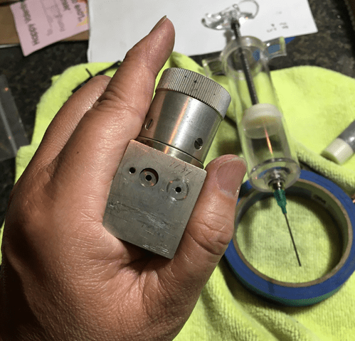 As shown, this is about as full as I was able to get it using the syringe and working the knob. However, this does not indicate failure.