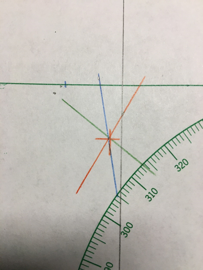 It may well be that I have seen only exceptional bubble chambers free from defects other than the filler port seal – this article only addresses the refilling of the chamber, not other repairs that may be necessary. These Kollsman sextants can be very accurate, even with the 50+ year old clockwork averagers. Here is a representative 3-star fix taken with this repaired sextant and its attached clockwork averager: