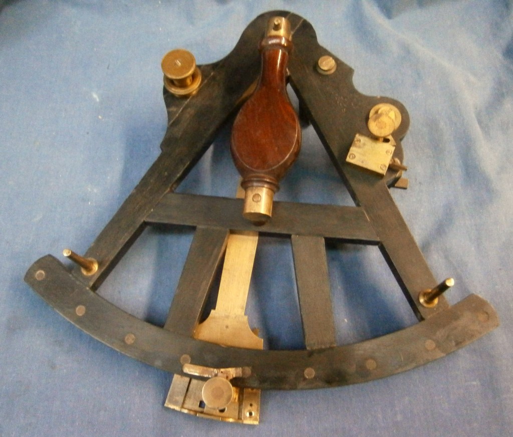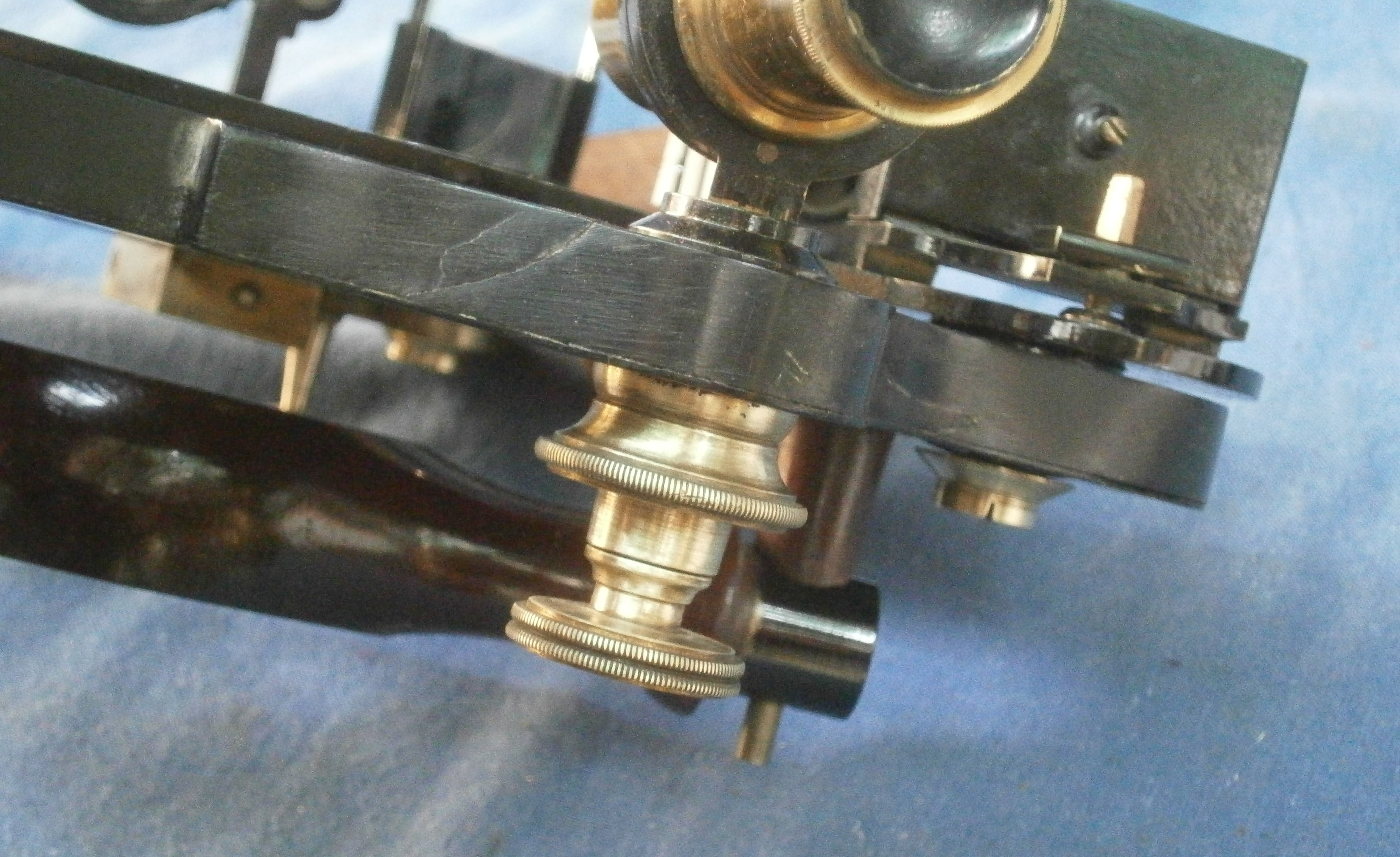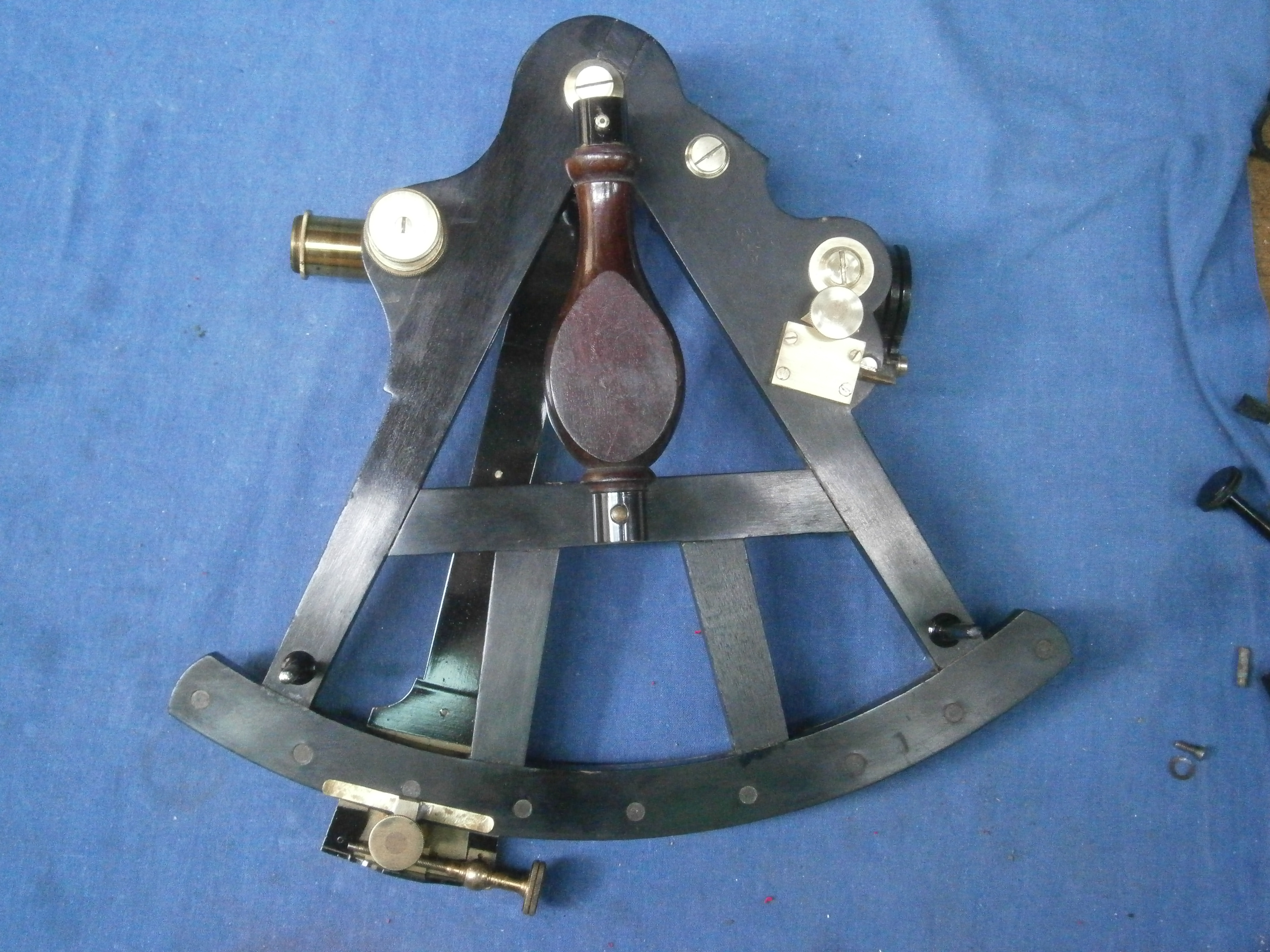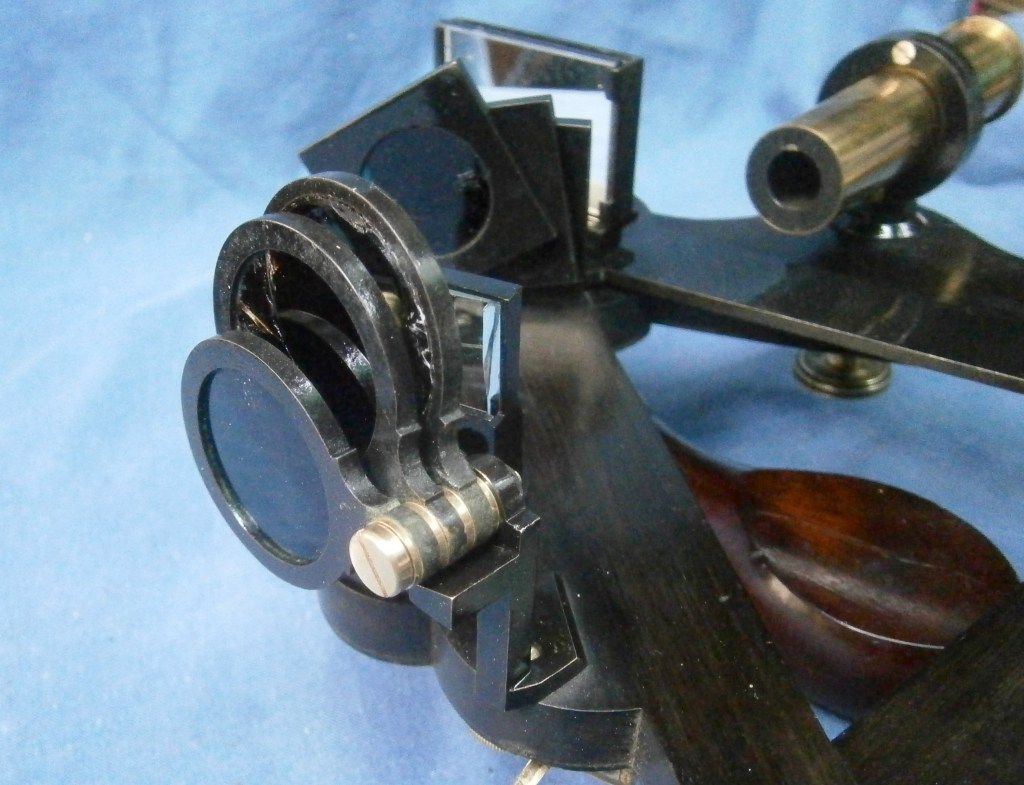 Philip cleaned, repaired and refinished the instrument, and repaired the box. The horizon mirror was professionally silvered, and a new index mirror was cut and the edges ground as advised in Bill’s blog article [see post for 11 February, 2009)]. The patina has been preserved, but the instrument is ready for another eight decades of hard use.