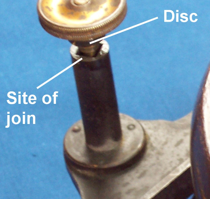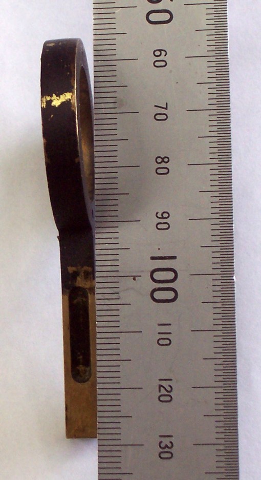 Postscript no. 2: On careful examination with magnification and the right light, a rivetted screw head is just visible in the brass at the left hand end of the arc. My surmise that a slip of brass was rivetted in after machining the groove for the silver arc seems to be correct.