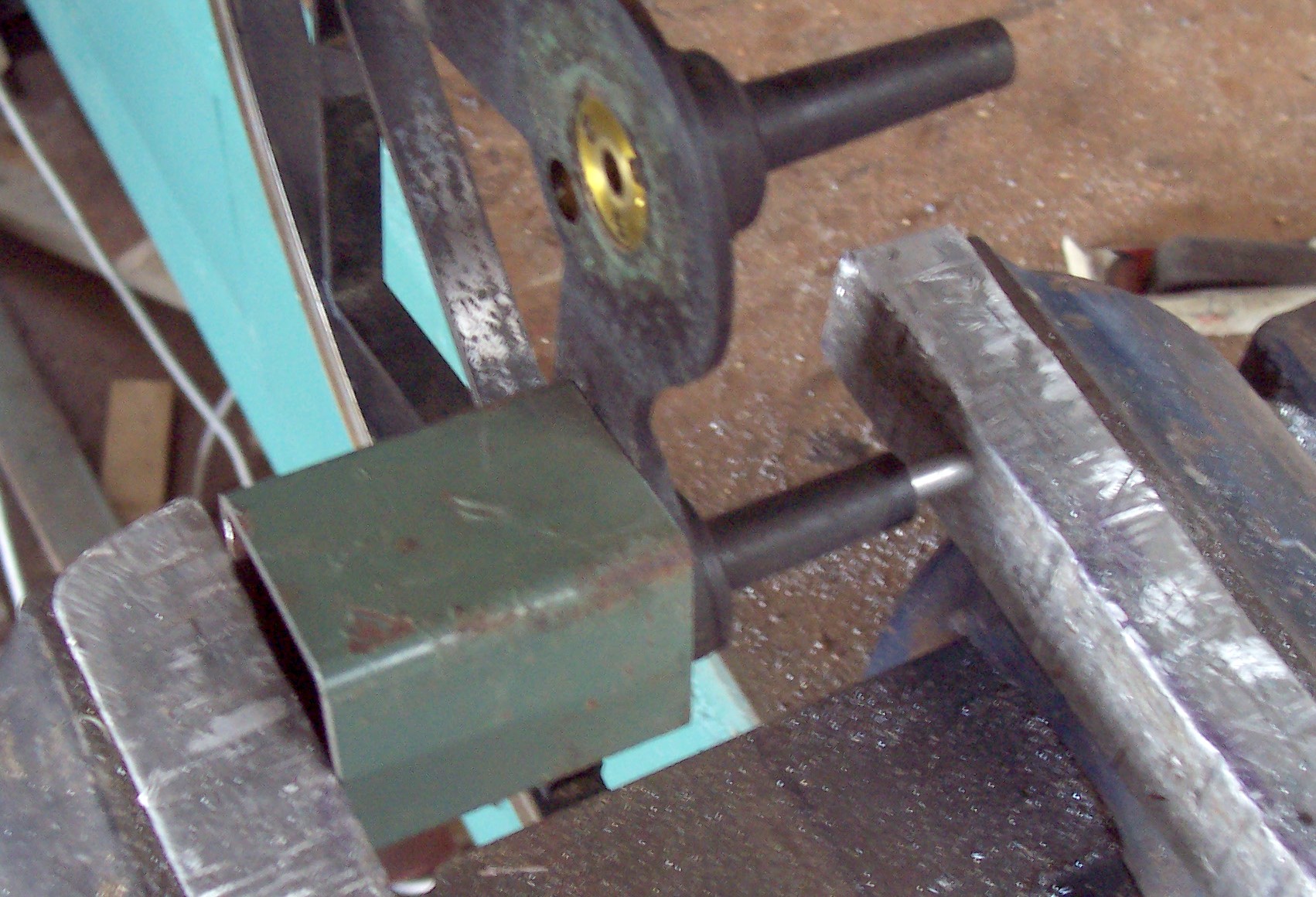 The threads of one leg had all but stripped and the other one was bald and the leg seemed to be held uncertainly in place with something like Araldite. Thus, jobs for the frame included machining off the threaded portion of the legs, fitting in a new piece and cutting a thread on it, and drilling and tapping the holes to fit the new thread. There was no question of copying the old threads, as there was no standardisation much before the middle of the nineteenth century. I used 4 BA threads for the legs. There were also two headless screws that had once secured the brace to the frame. The remains of the screws had to be filed flush, centre popped, drilled out and retapped, and I had to make new screws to match the remaining ones. Number 9 BA seemed to be about the right size. I was very thankful that a friend had recently given me a full set of BA taps and dies, as the odd sizes are rather hard to come by.